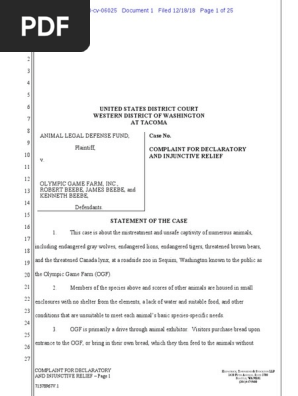 AP A federal judge has denied a motion to dismiss an animal mistreatment lawsuit against a Washington state wildlife farm handing an initial victory to animal rights. Up to 3 cash back Olympic Game Farm Lawsuit - Free download as PDF File pdf Text File txt or read online for free. How does this lawsuit affect the Center of Excellence development project.